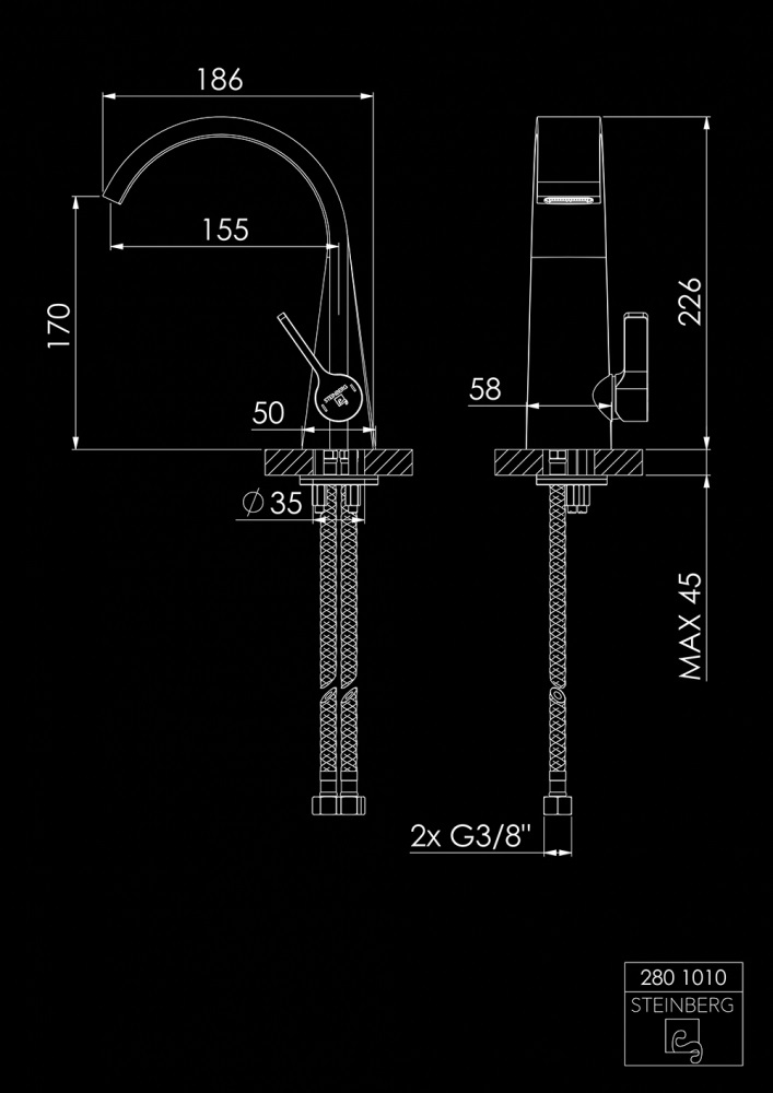 STEINBERG SERIA 280 Bateria umywalkowa jednootworowa bez korka Czarny mat 280.1010.S / 2801010S
