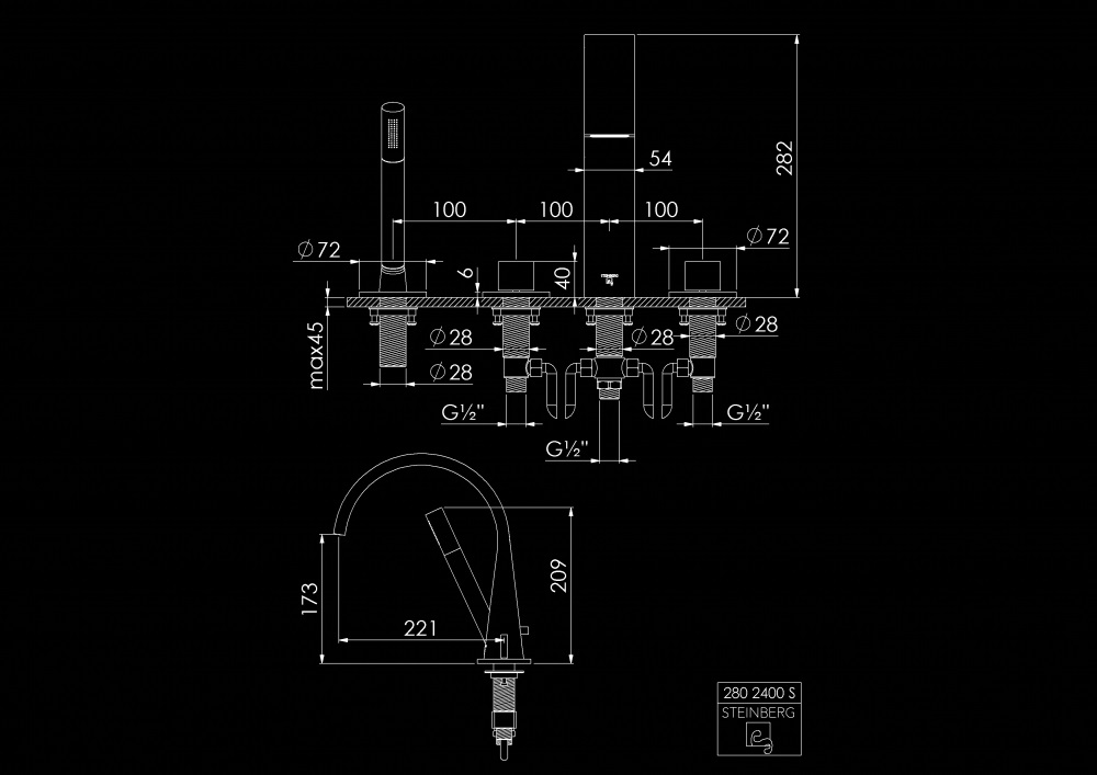 STEINBERG SERIA 280 Bateria wannowa 4-otworowa Chrom 280.2400 / 2802400