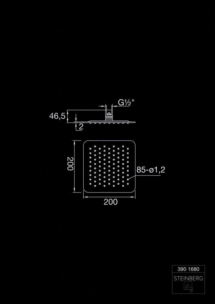 STEINBERG SERIA 390 Deszczownica ultrapłaska 200x200 mm Chrom 390.1680 / 3901680