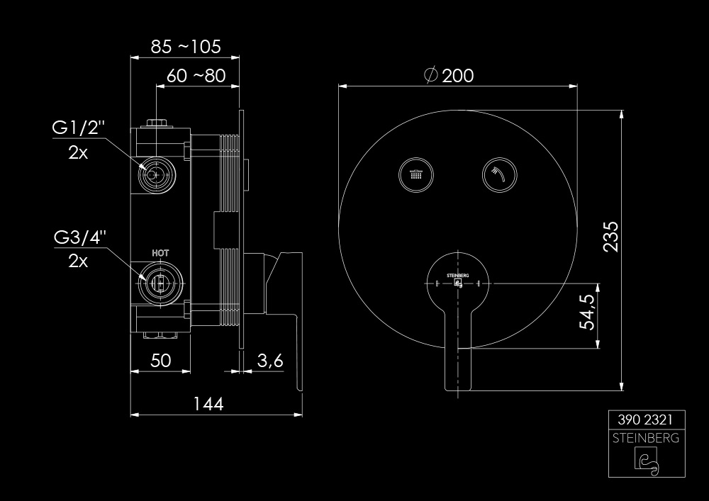 STEINBERG SERIA 390 Bateria natryskowa podtynkowa 2-drożna Chrom 390.2321 / 3902321