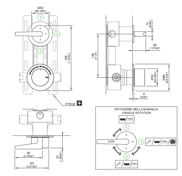 CEA Flag Bateria prysznicowa ścienna termostatyczna z przełącznikiem 2/3-drożnym element zewnętrzny Satin Stainless Steel FLG50S