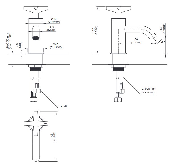 CEA Cross Bateria umywalkowa jednootworowa Satin Stainless Steel CRX41S
