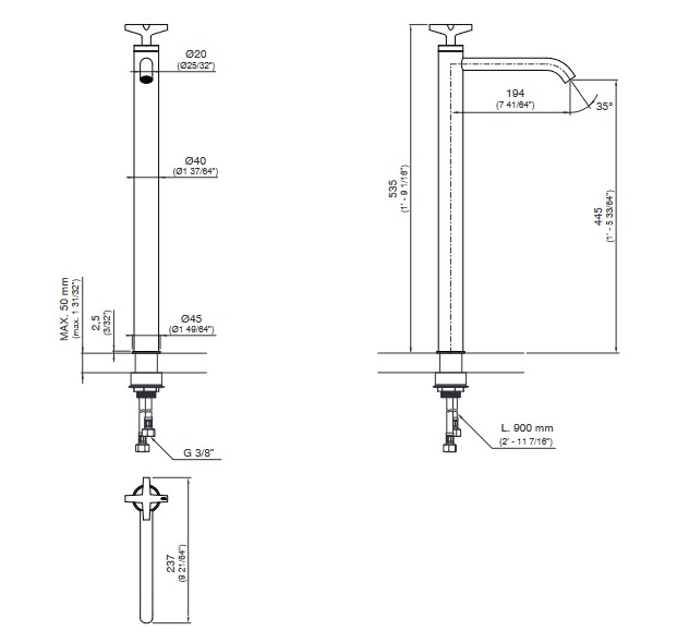 CEA Cross Bateria umywalkowa jednootworowa do umywalki nablatowej Satin Stainless Steel CRX46S