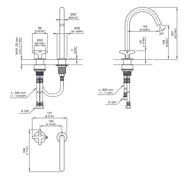 CEA Cross Bateria umywalkowa 2-otworowa z obrotową wylewką Satin Stainless Steel CRX02S