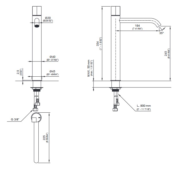 CEA Duet Bateria umywalkowa jednootworowa do umywalki nablatowej Satin Stainless Steel DET05S