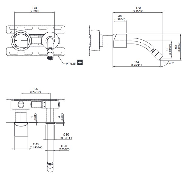 CEA Duet Bateria bidetowa  ścienna z regulowaną wylewką element zewnętrzny Satin Stainless Steel DET19S