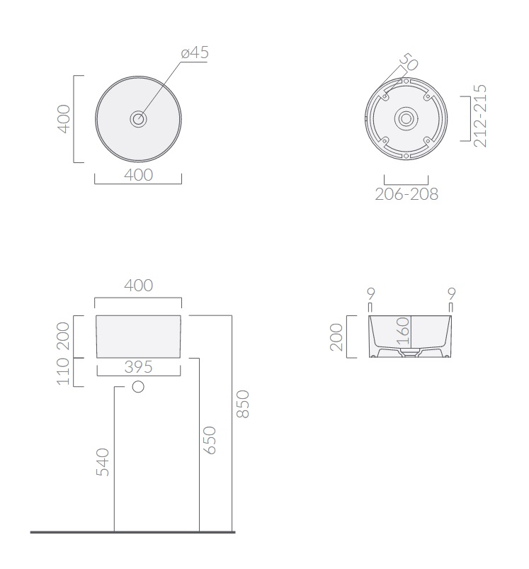 Galassia DREAM Umywalka stawiana na blat ∅ 40 cm Biały 7306