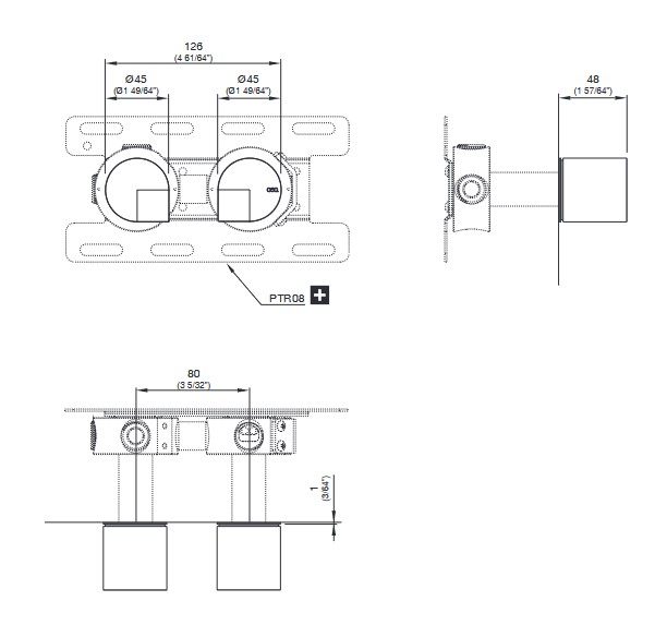 CEA Duet Zawór odcinający (para) ścienny mieszający element zewnętrzny Satin Stainless Steel DET43S