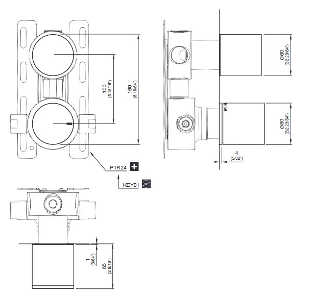 CEA Opus Bateria prysznicowa ścienna termostatyczna z zaworem odcinającym element zewnętrzny Satin Stainless Steel OPS51S