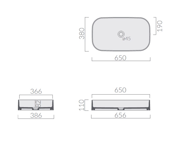 Galassia SMARTB Umywalka stawiana na blat 65x38 cm Biały 7407