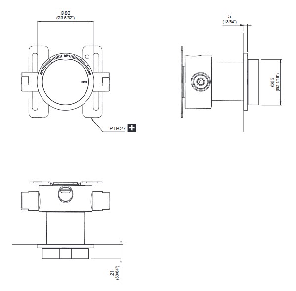 CEA Giotto Mieszacz termostatyczny ścienny element zewnętrzny Satin Stainless Steel TRM08S