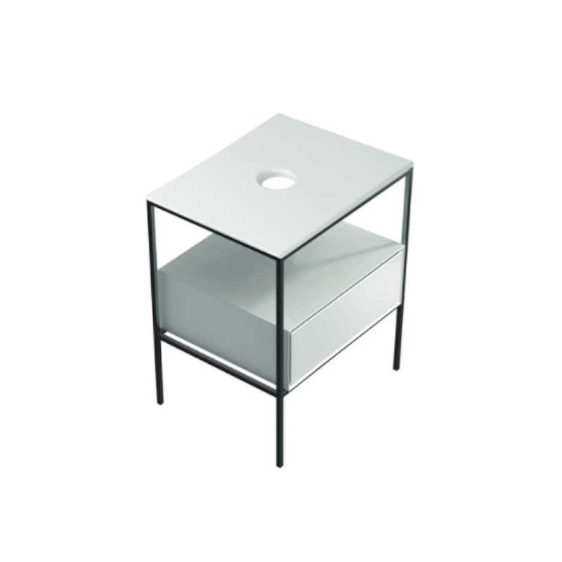 Galassia Zestaw Stelaż podumywalkowy stojący Czarny + Blat ceramiczny Biały + Półka z szufladą Biały 8909 + 2050 + 8918BM