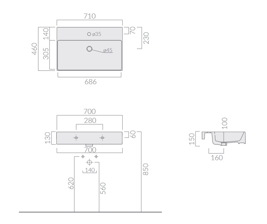 Galassia MEG11 PRO Umywalka ścienna/stawiana na blat 71x46 cm Biały 8968