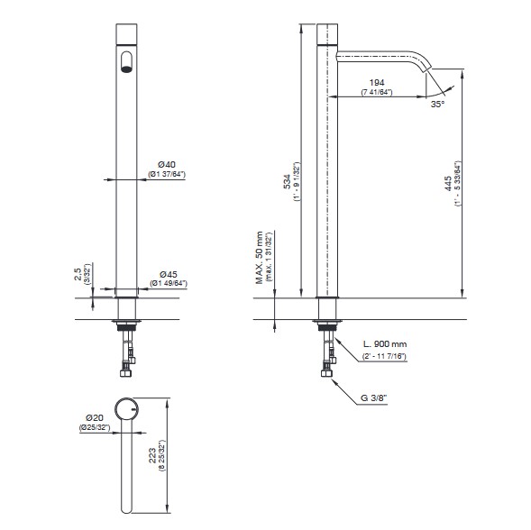 CEA Giotto Plus Bateria umywalkowa jednootworowa do umywalki nablatowej H53,5 cm Satin Stainless Steel GIO66S