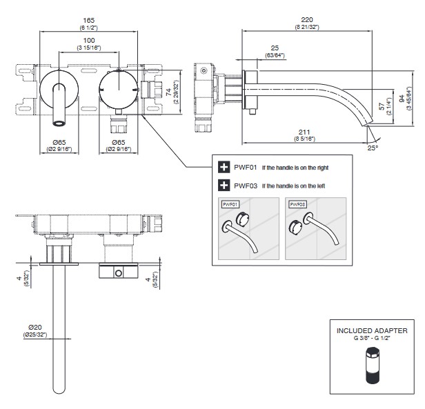 CEA Giotto Plus Bateria umywalkowa ścienna z wylewką 22 cm element zewnętrzny Satin Stainless Steel GIO78S