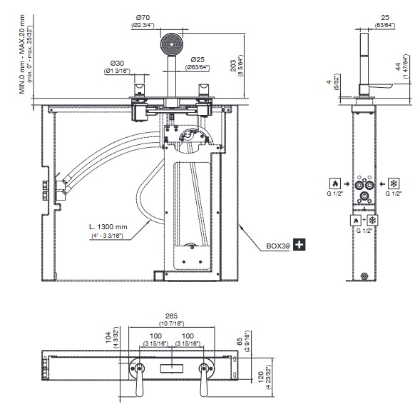 CEA Lutezia Plus Bateria wannowa 3-otworowa na brzeg wanny ze słuchawką prysznicową element zewnętrzny Satin Stainless Steel LTZ45S