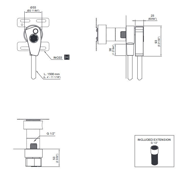 CEA Neutra Słuchawka prysznicowa z uchwytem ściennym i przyłączem wody element zewnętrzny Satin Stainless Steel NEU28GS