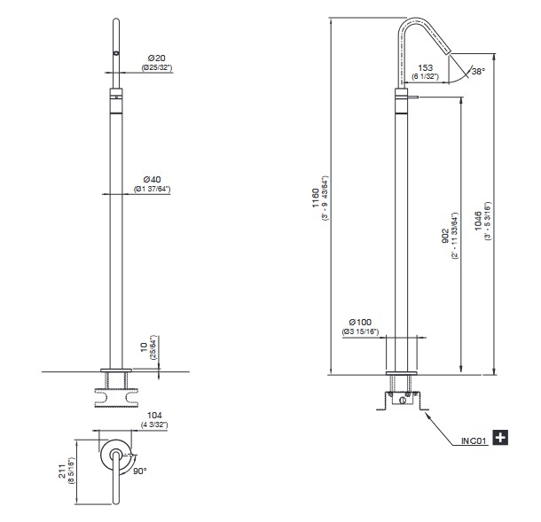 Wysokość wylewki: 104,6 cm