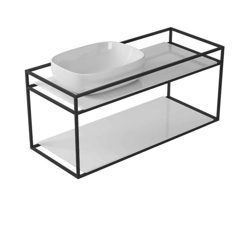 Galassia Zestaw Stelaż podumywalkowy ścienny Czarny + Umywalka stawiana na blat Biały + Blat ceramiczny podumywalkowy Biały + Blat ceramiczny Biały 2075NE + 7300 + 2053 + 2058
