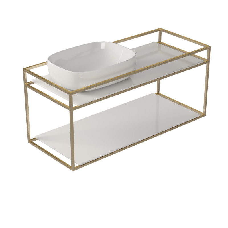 Galassia Zestaw Stelaż podumywalkowy ścienny Gold + + Umywalka stawiana na blat Biały + Blat ceramiczny podumywalkowy Biały + Blat ceramiczny Biały 2075OR + 7300 + 2053 + 2058