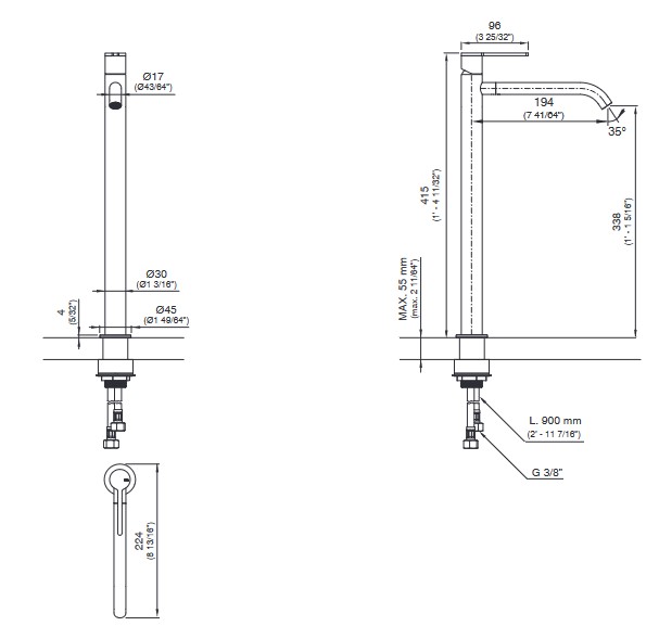 Wysokość wylewki: 33,8 cm