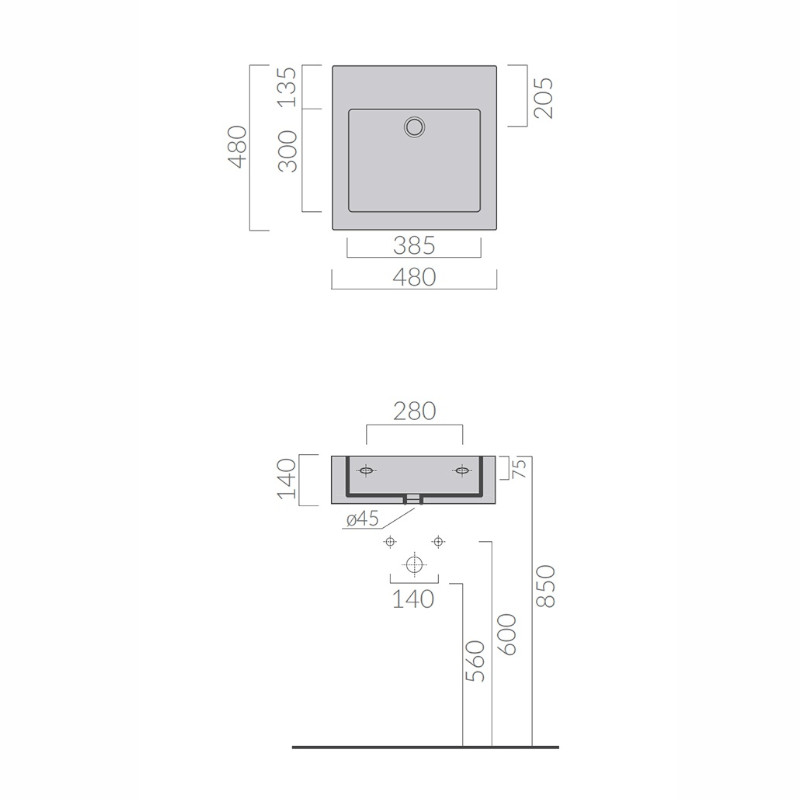 Galassia PLUS DESIGN Umywalka ścienna lub stawiana na blat 48x48 cm Biały 6022SF