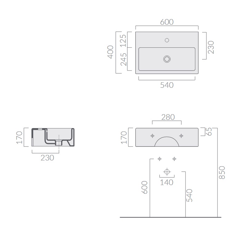 Galassia PLUS DESIGN Umywalka ścienna lub nablatowa 60x20 cm Biały mat 6032M