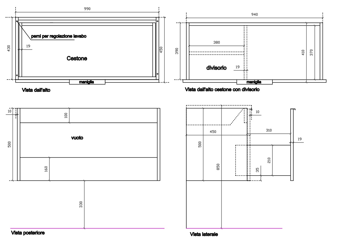 Galassia EDEN Szafka wisząca pod umywalkę 99x45 cm Wiąz naturalny 7244ON
