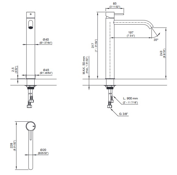 Wysokość wylewki: 24,3 cm