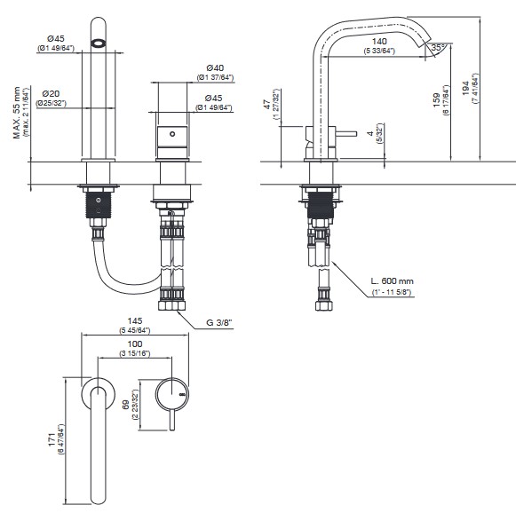 CEA Milo360 Bateria umywalkowa 2-otworowa z obrotową wylewką H19,5 cm Satin Stainless Steel MIL75S