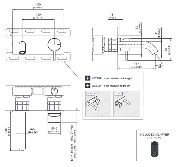 CEA Milo360 Bateria umywalkowa ścienna z wylewką 12,5 cm element zewnętrzny Satin Stainless Steel MIL08S