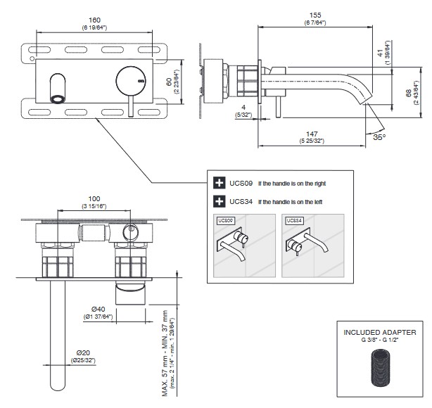 CEA Milo360 Bateria umywalkowa ścienna z wylewką 15,5 cm element zewnętrzny Satin Stainless Steel MIL140S