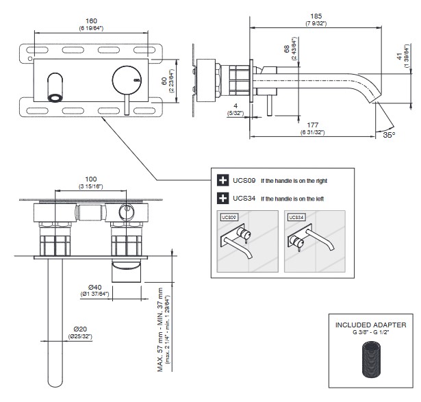 CEA Milo360 Bateria umywalkowa ścienna z wylewką 18,5 cm element zewnętrzny Satin Stainless Steel MIL04S