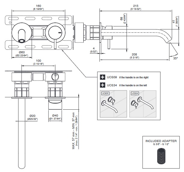 CEA Milo360 Bateria umywalkowa ścienna z wylewką 21,5 cm element zewnętrzny Satin Stainless Steel MIL106S