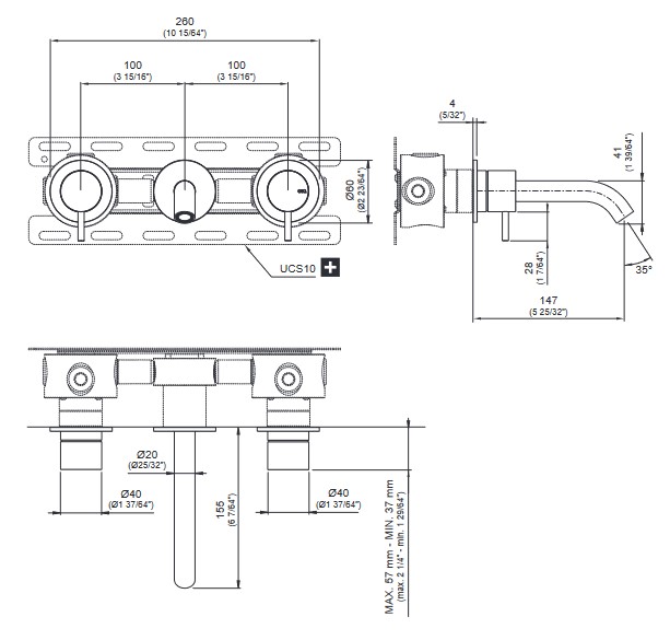 CEA Milo360 Bateria umywalkowa ścienna z wylewką 15,5 cm element zewnętrzny Satin Stainless Steel MIL142S