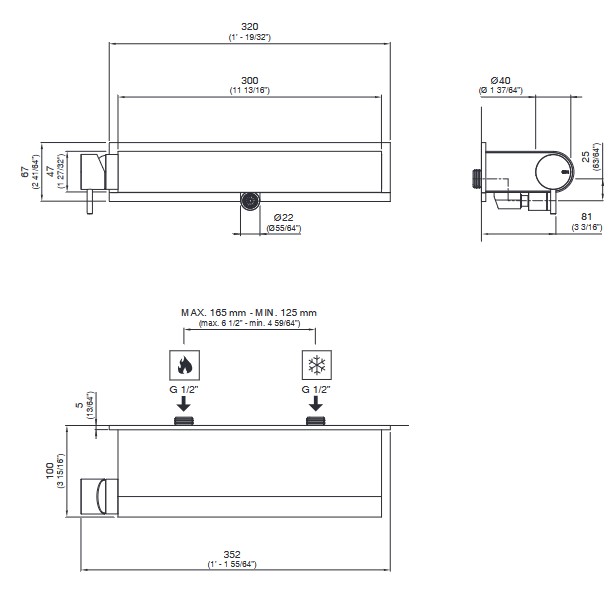 CEA Milo360 Bateria prysznicowa ścienna z półką i z regulowaną wylewką Satin Stainless Steel MIL96S