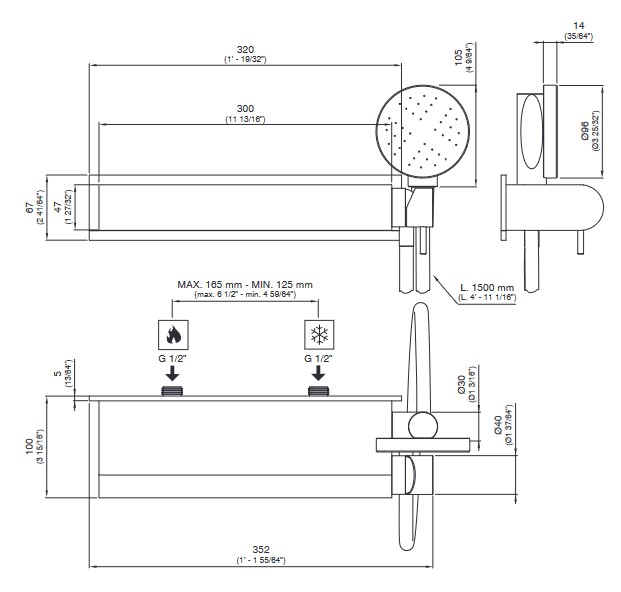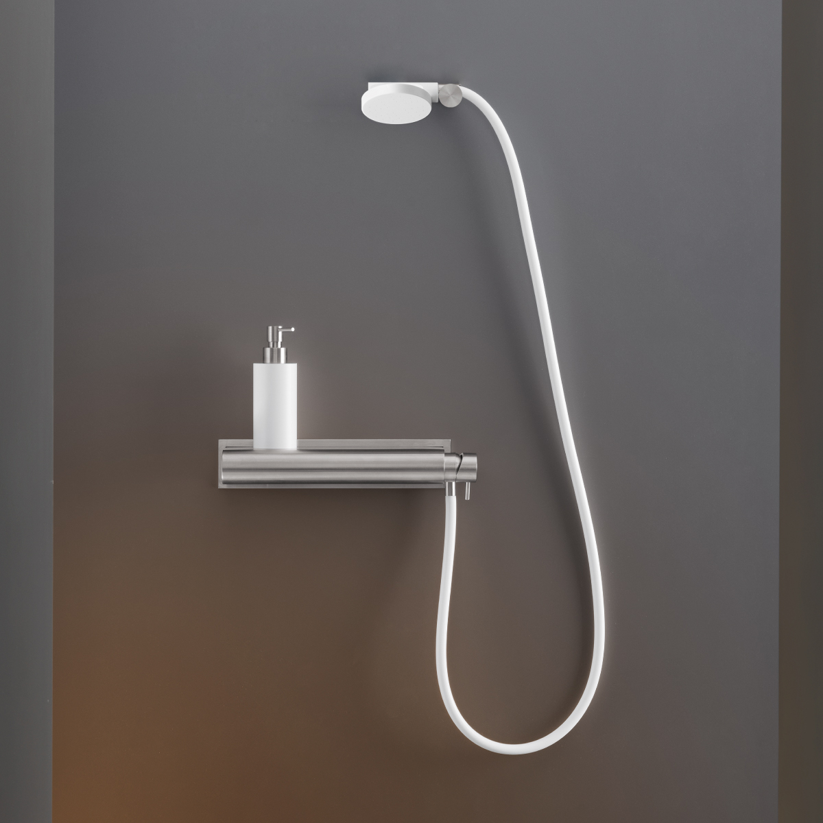 CEA Milo360 Bateria prysznicowa ścienna z półką i słuchawką prysznicową Delrin® Satin Stainless Steel MIL98WS