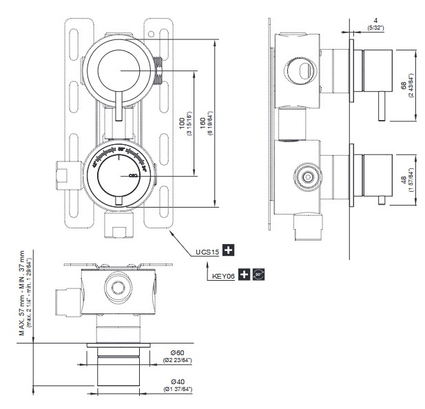 CEA Milo360 Bateria prysznicowa ścienna termostatyczna z zaworem odcinającym element zewnętrzny Satin Stainless Steel MIL61S