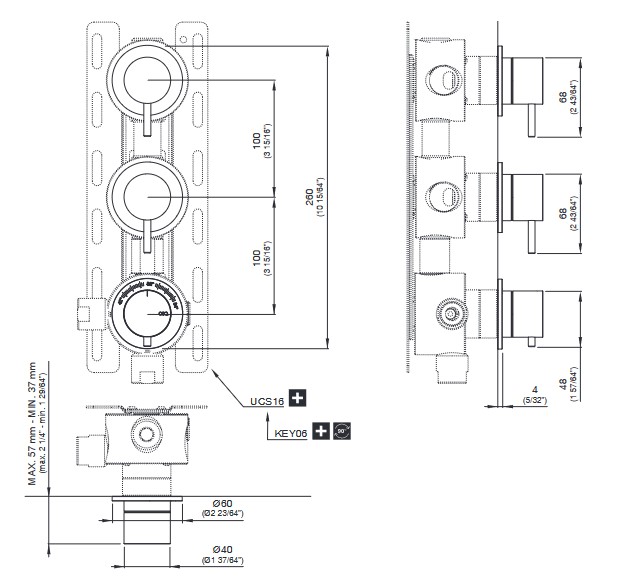 CEA Milo360 Bateria prysznicowa ścienna termostatyczna z 2 zaworami odcinającymi element zewnętrzny Satin Stainless Steel MIL62S
