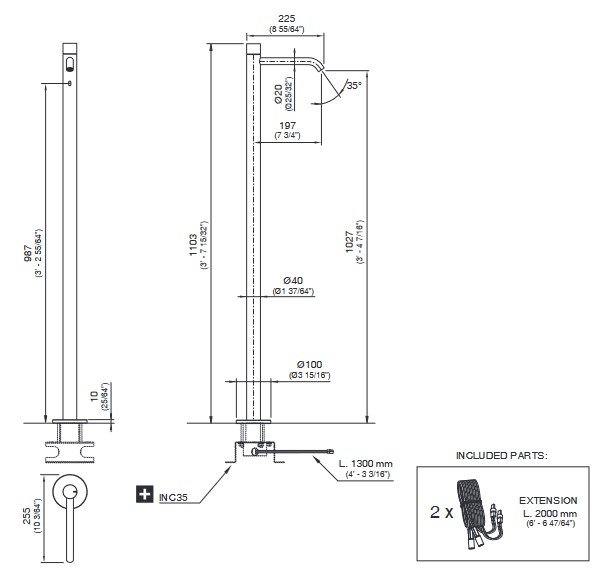 CEA Milo360 Bateria umywalkowa wolnostojąca z czujnikiem ruchu H110,5 cm element zewnętrzny Satin Stainless Steel MIL020S