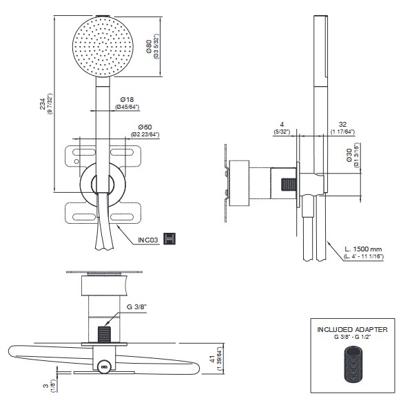 CEA Słuchawka prysznicowa z uchwytem ściennym i przyłączem wody element zewnętrzny Satin Stainless Steel FRE192S