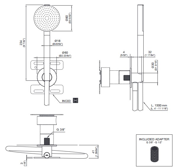 CEA Słuchawka prysznicowa z uchwytem ściennym i przyłączem wody element zewnętrzny Satin Stainless Steel FRE193WS
