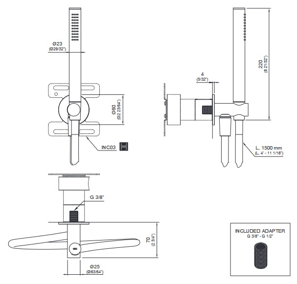 CEA Słuchawka prysznicowa z uchwytem ściennym i przyłączem wody element zewnętrzny Satin Stainless Steel FRE203BKS