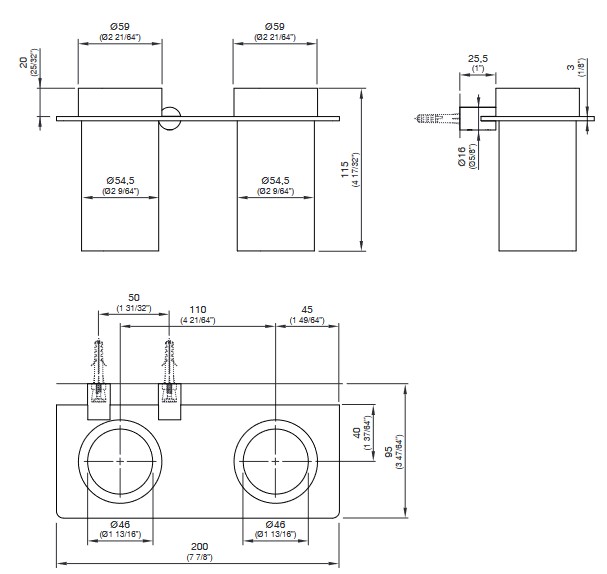 CEA Stem Półka z podwójnym uchwytem na szczoteczki Delrin® ścienna Satin Stainless Steel MEN09S