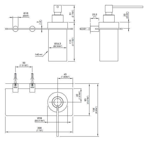 CEA Stem Półka z dozownikiem Delrin® ścienna Satin Stainless Steel MEN08S