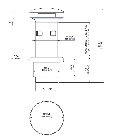 CEA Korek z wolnym odpływem do umywalek/bidetów z przelewem lub bez przelewu Satin Stainless Steel PIL07S