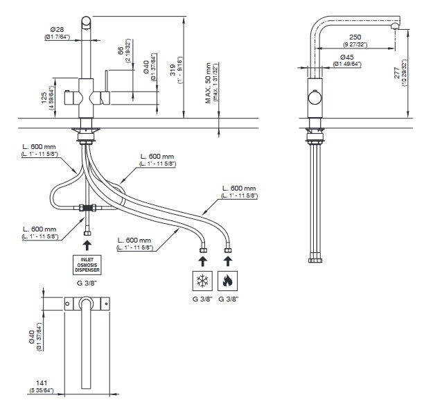 CEA Milo360 Bateria podokienna kuchenna jednootworowa z osobnym zaworem do zagotowanej wody Satin Stainless Steel MIL212S