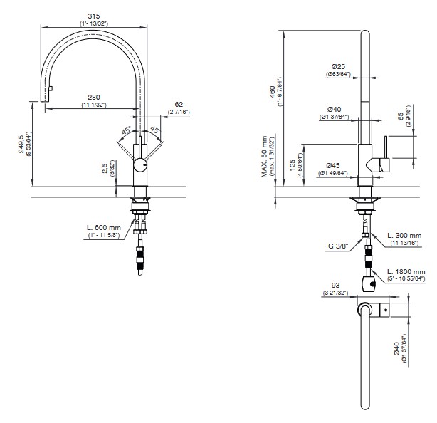 Wysokość wylewki: 24,95 cm