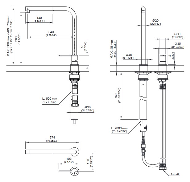 CEA Innovo Bateria kuchenna 2-otworowa z obrotową góra-dół i wyciąganą wylewką Satin Stainless Steel INV85S
