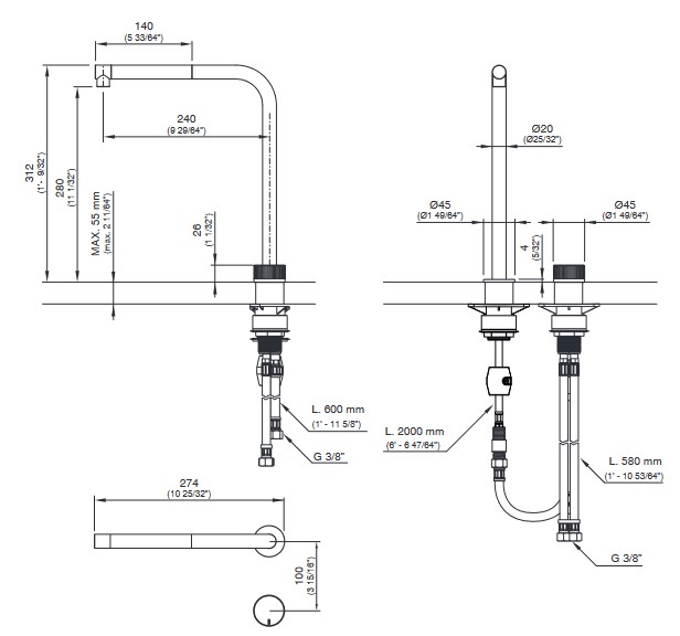 CEA Bateria kuchenna 2-otworowa z obrotową i wyciąganą wylewką Satin Stainless Steel APP02S